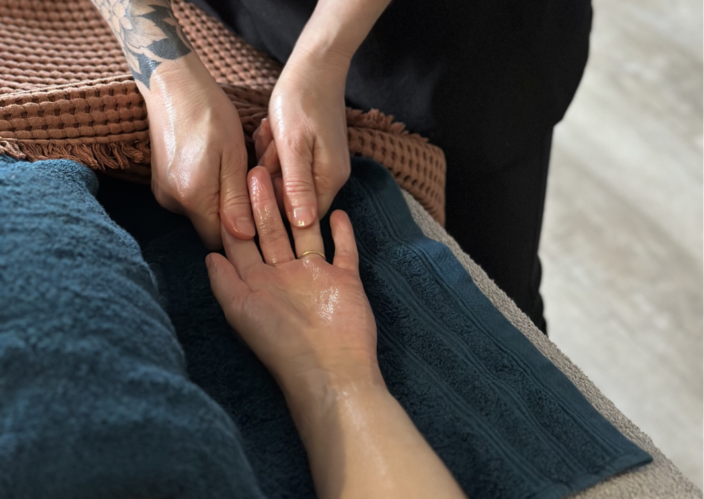 Souvent sollicitées au quotidien, les mains retrouvent souplesse, hydratation et légèreté. La peau est nourrie, le toucher plus doux, et une sensation de relaxation s’installe, favorisant un véritable lâcher-prise.